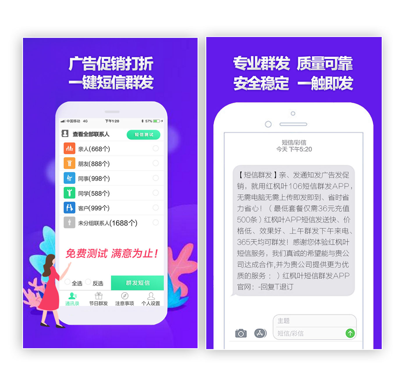 節(jié)日群發(fā)短信,下載紅楓葉短信群發(fā)APP,群發(fā)500條僅需36元!