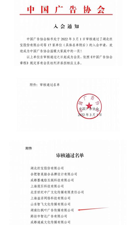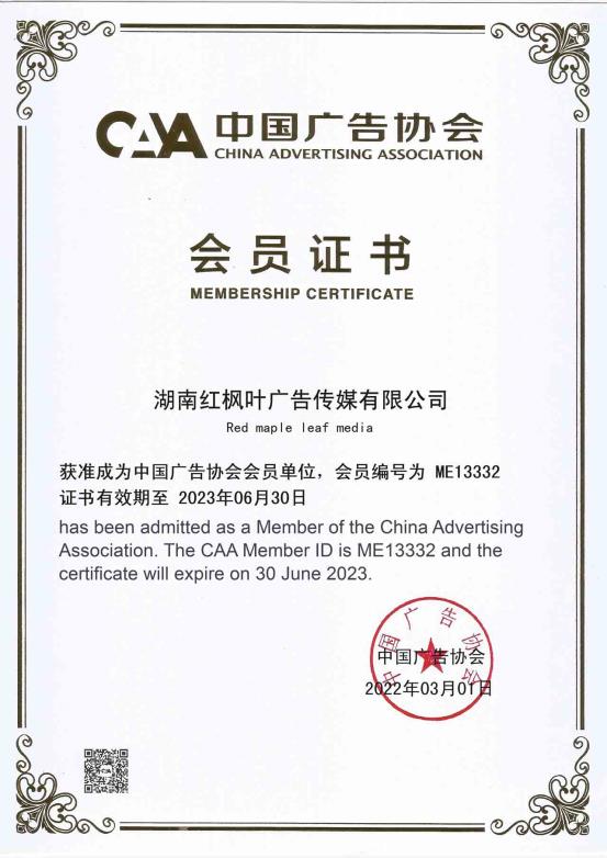 紅楓葉傳媒正式加入中國廣告協(xié)會